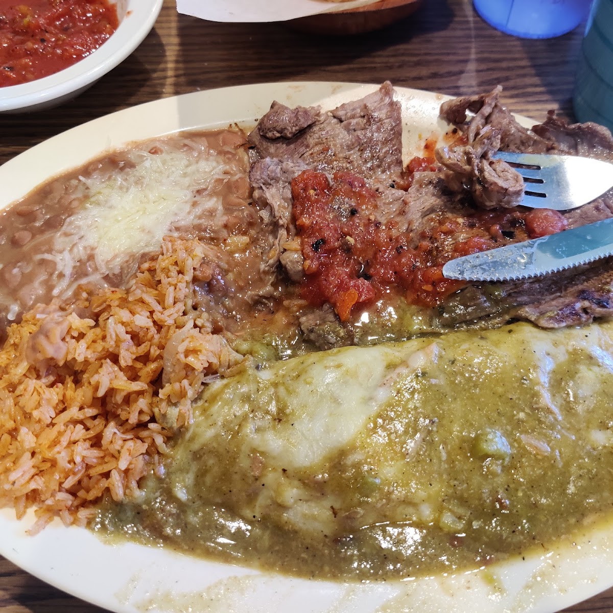 The menu is a tantalizing showcase of traditional dishes, each crafted with care and bursting with flavor. Notable offerings include the Combination Plates, featuring either a mouthwatering Chile Verde or Colorado Pork simmered in a rich, spicy sauce, served alongside fluffy rice and savory beans for just US$19.51. For a true fiesta experience, try the Barrio Platter, which presents a succulent carne asada taco paired with a cheesy enchilada — all for only US$14.64. If tacos are your passion, their Tacos de Carne Asada are highly praised, offering the perfect blend of juicy beef and delightful accompaniments, priced at US$18.12.